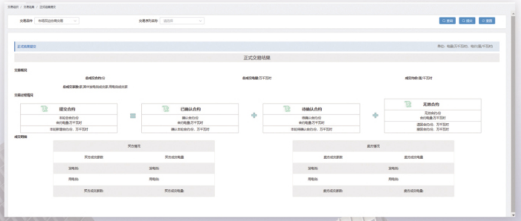 按照年度/月度開(kāi)展市場(chǎng)雙邊協(xié)商、市場(chǎng)掛牌交易、年度集中交易、月度集中交易等交易品種的交易申報(bào)操作,支持跨省區(qū)和省內(nèi)的交易開(kāi)展。