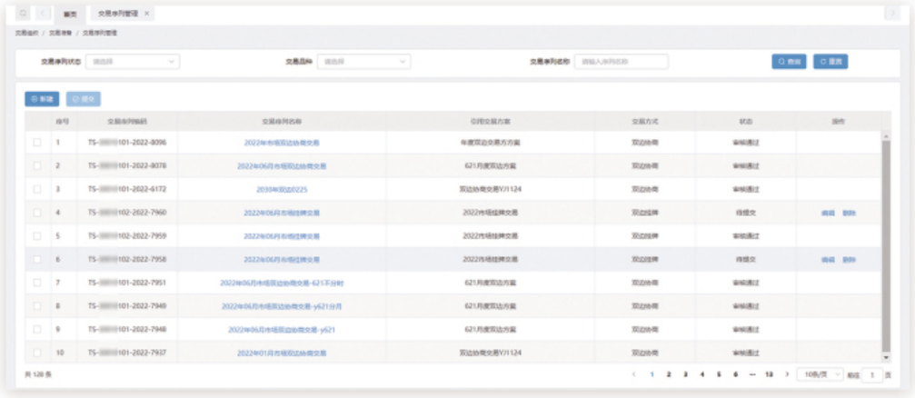 對(duì)交易序列的維護(hù),通過(guò)選擇交易方案,按需選擇交易需求,從準(zhǔn)入、申報(bào)、出清等方面對(duì)交易進(jìn)行準(zhǔn)備,同時(shí)生成交易序列。